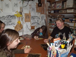 V naší fotogalerii najdete záběry z pracovní činnosti během pravidelných schůzek dokumentující práci s rozdílnými nástroji, seznamování se s novými výtvarnými technikami, ale i záběry ze spontánních projevů. Přirozenou samozřejmostí zůstává, že po ukončení práce jsou všechny nástroje uklizeny tam kde mají své místo, stůl je utřen mokrou houbičkou a suchým hadrem, pod židlí je zameteno.